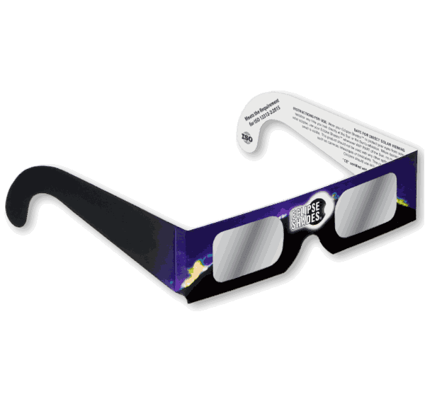 Enkel og trygg brille for å betrakte solformørkelse, solflekker eller til generelle studier av solen. Med disse brillene er du forberedt både for solformørkelsen 10. juni 2021 og 25. oktober 2022. Brillene er produsert av sikker solfilm som fjerner det meste av UV/IR-stråling og kraftig reduserer sollysets intensitet. En bør allikevel ikke se direkte mot sola lenge av gangen (maks 2-3 minutter). Solformørkelsesbrillen har en optisk densitet på 5 og er CE-godkjent i henhold til EN 169/1992. De er også ISO 12312-2:2015 sertifisert.