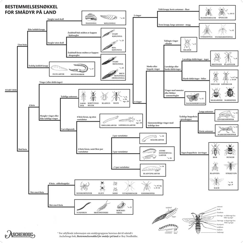 Bestemmelsesnøkkel til hovedgrupper av insekter og andre småkryp på land.