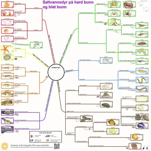 Saltvannsdyr, bestemmelsesduk, med farge