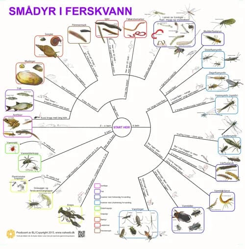 Smådyr i ferskvann, bestemmelsesduk, med farge