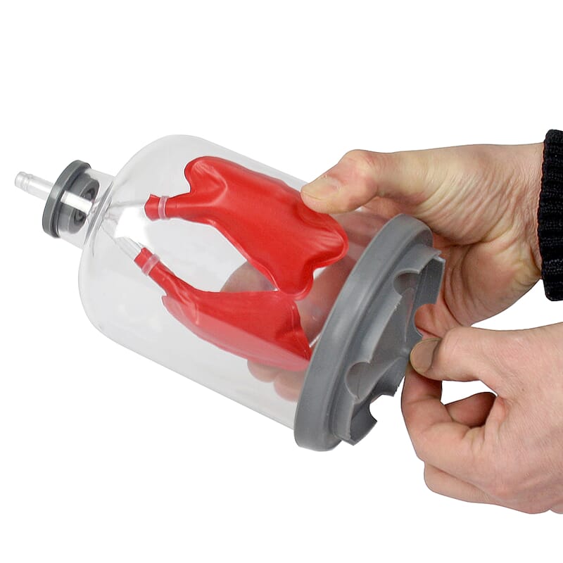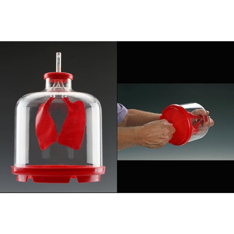 Ny pedagogisk lungemodell som viser fysiologien når vi puster inn og ut. I bunnen av beholderen er en plastmembran som