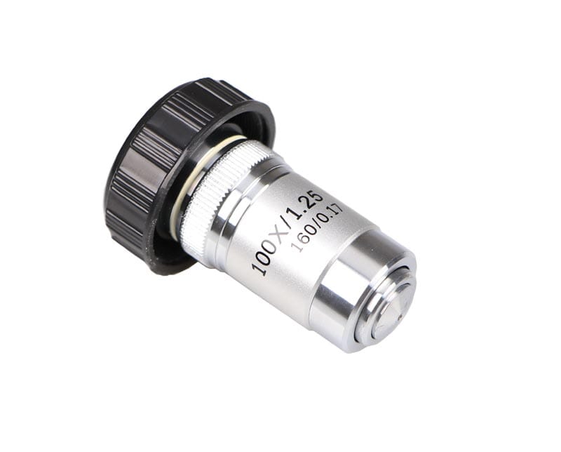 Objektiv 100x til Fokusmikroskopene 307005, 307006, 307007. Sammen med 10 x okular gir det 1000x forstørrelse.
