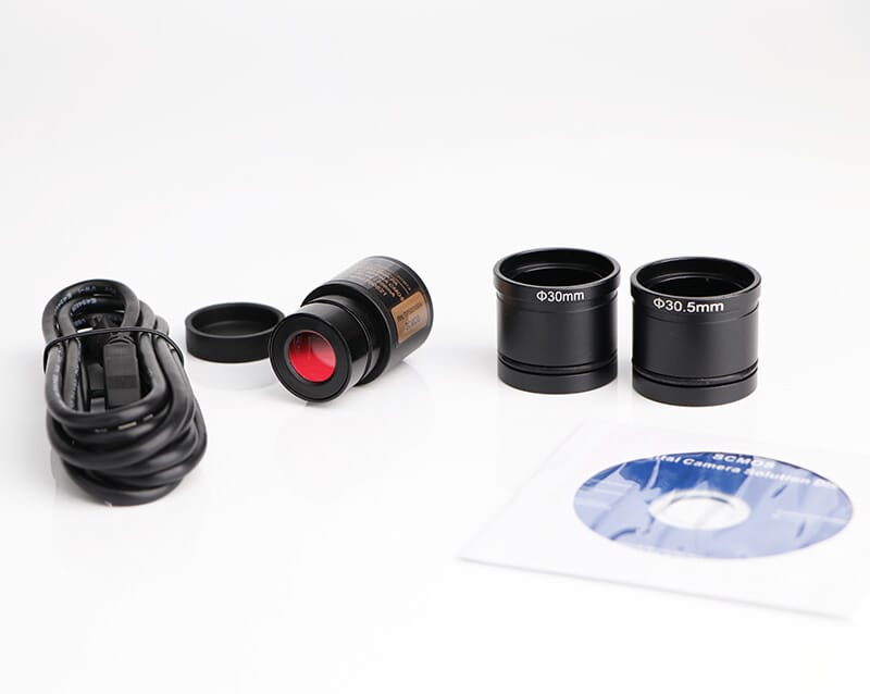 Kameraet, som leveres inkludert programvare, kobles til PC via USB-kabel. Inkludert er også to ekstra adaptere for montering i for eksempel stereolupe.