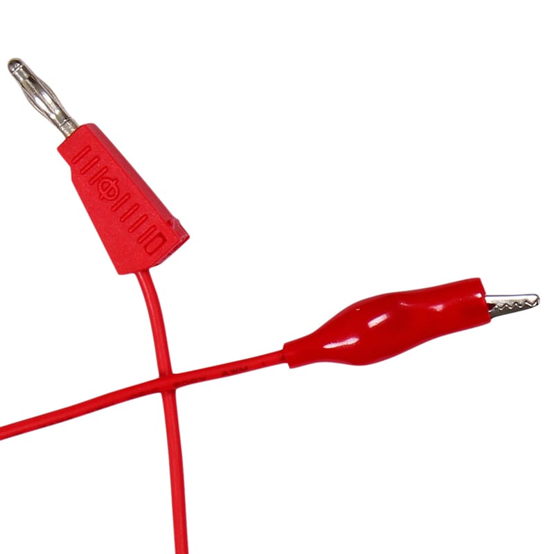 Den ene enden av kabelen har en støpt 4 mm bananplugg. Fjæren er utformet slik at pluggen kan rotere i kontakten. Den andre enden har en krokodilleklemme med isolerende deksel.