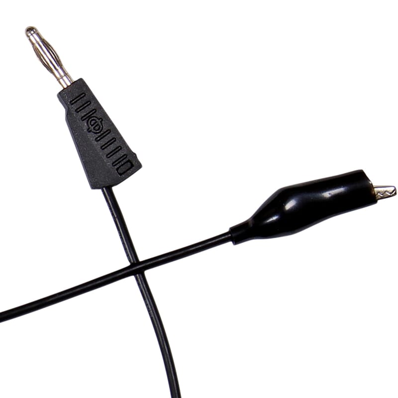 Den ene enden av kabelen har en støpt 4 mm bananplugg. Fjæren er utformet slik at pluggen kan rotere i kontakten. Den andre enden har en krokodilleklemme med isolerende deksel.
