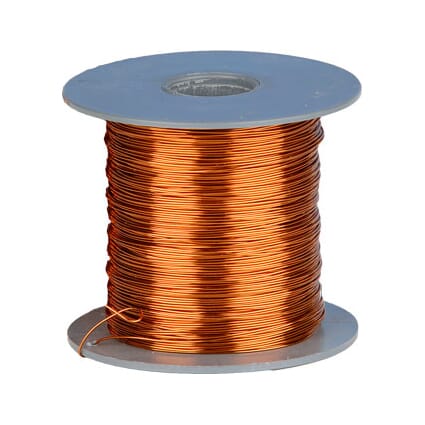 Lakkert (emaljert) entrådet kobbertråd for vikling av transformatorer eller elmotorer.
