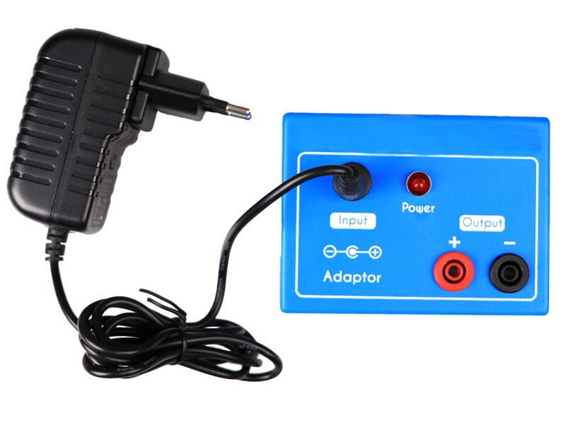 Spenningskilde for lysboksen består av en nettadapter og en smartadapter. Nettadapteren settes i lysnettet og gir 12 V 2 A ut. Med smartadapteren får du spenningen fra kontakten på nettadapteren ut på to 4 mm bøssinger. Lysboksen kobles til disse. Smartadapteren kan også brukes med andre nettadaptere hvor du ønsker spenningen tilkoblet via bananstikker.