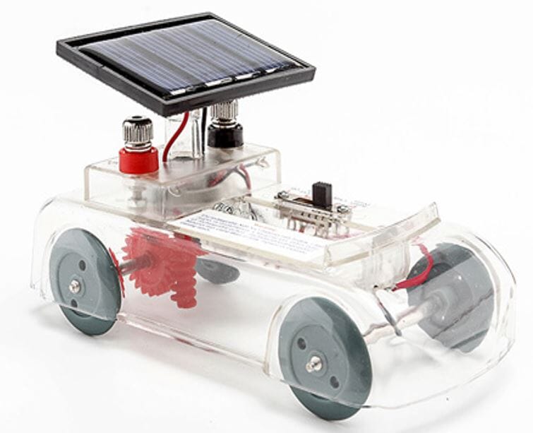 Fin solcellebil som leveres inkludert oppladbart batteri. Bilen kan drives direkte av sollyset eller ei sterk lampe eller man kan lade opp batteriet og la det drive bilen.