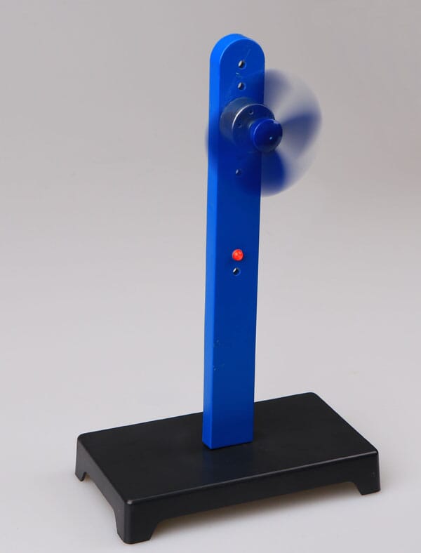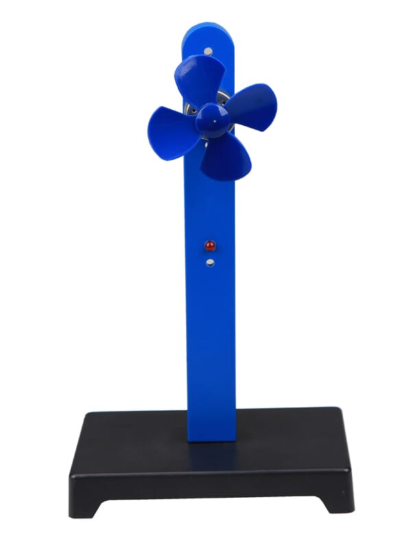 Vindgenerator bygget opp av motor påmontert propell. Motoren er koplet til en lysdiode som lyser når propellen snurrer rundt.