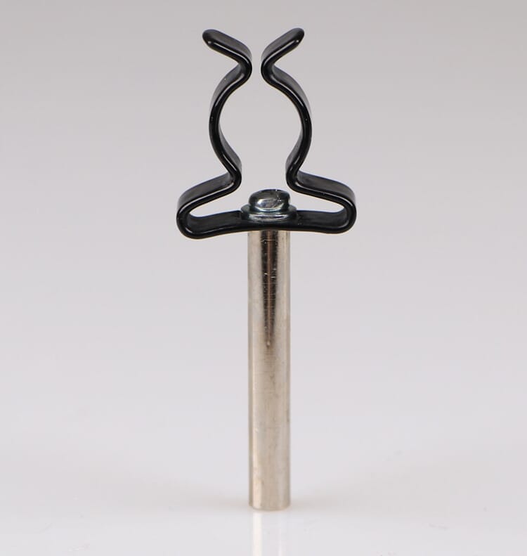 Fjærende klemme som holder sylindriske objekter fra 13 mm til 18 mm. Påmontert 6 mm stang. Passer perfekt for våre kraftmålere 101090 - 101094.