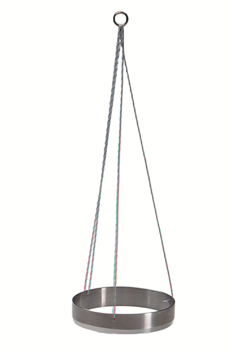 Aluminiumsring med diameter 65 mm opphengt i tre snorer som er sammenknytt i en ring. Ved hjelp av en følsom kraftmåler