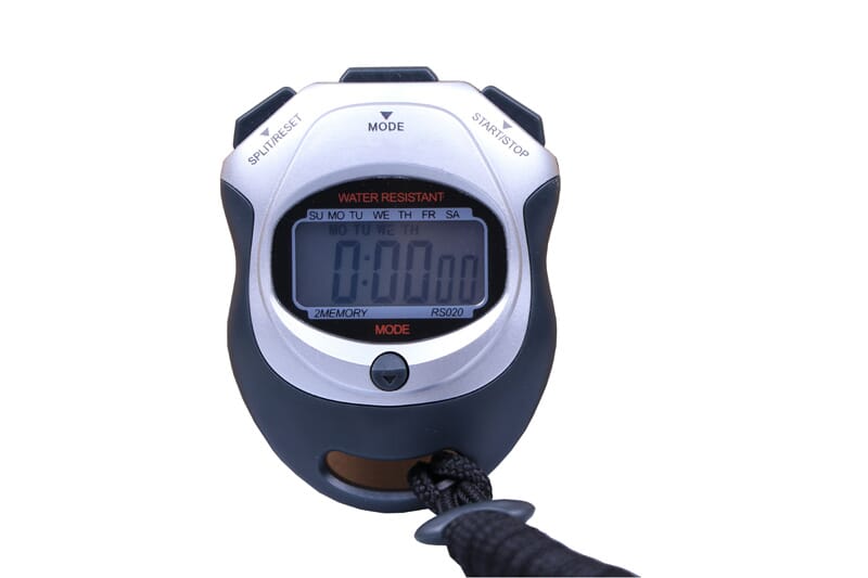 Meget brukervennlig stoppeklokke i moderne design og med esktra stort display. Viser tiden med nøyaktighet 1/100 s. Batteri og snor til å henge klokka rundt halsen medfølger.