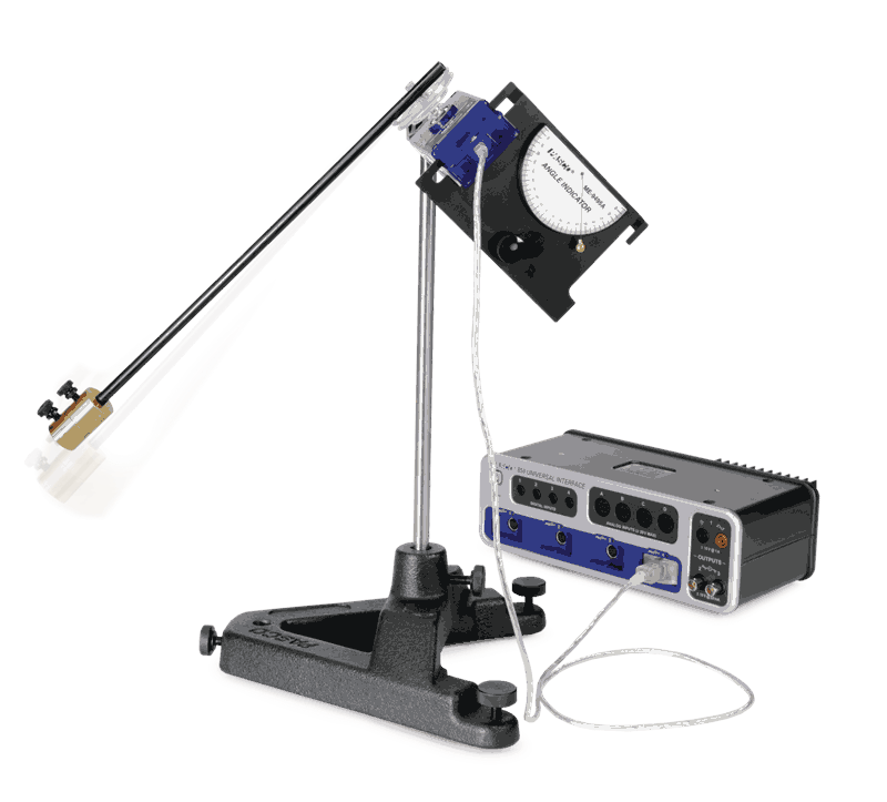 A simple rigid pendulum consists of a 35 cm long lightweight aluminum tube with masses at the end, mounted on a Rotary Motion Sensor. The pendulum is constrained to oscillate in a plane tilted at an angle from the vertical. This effectively reduces the acceleration due to gravity because the restoring force is decreased.