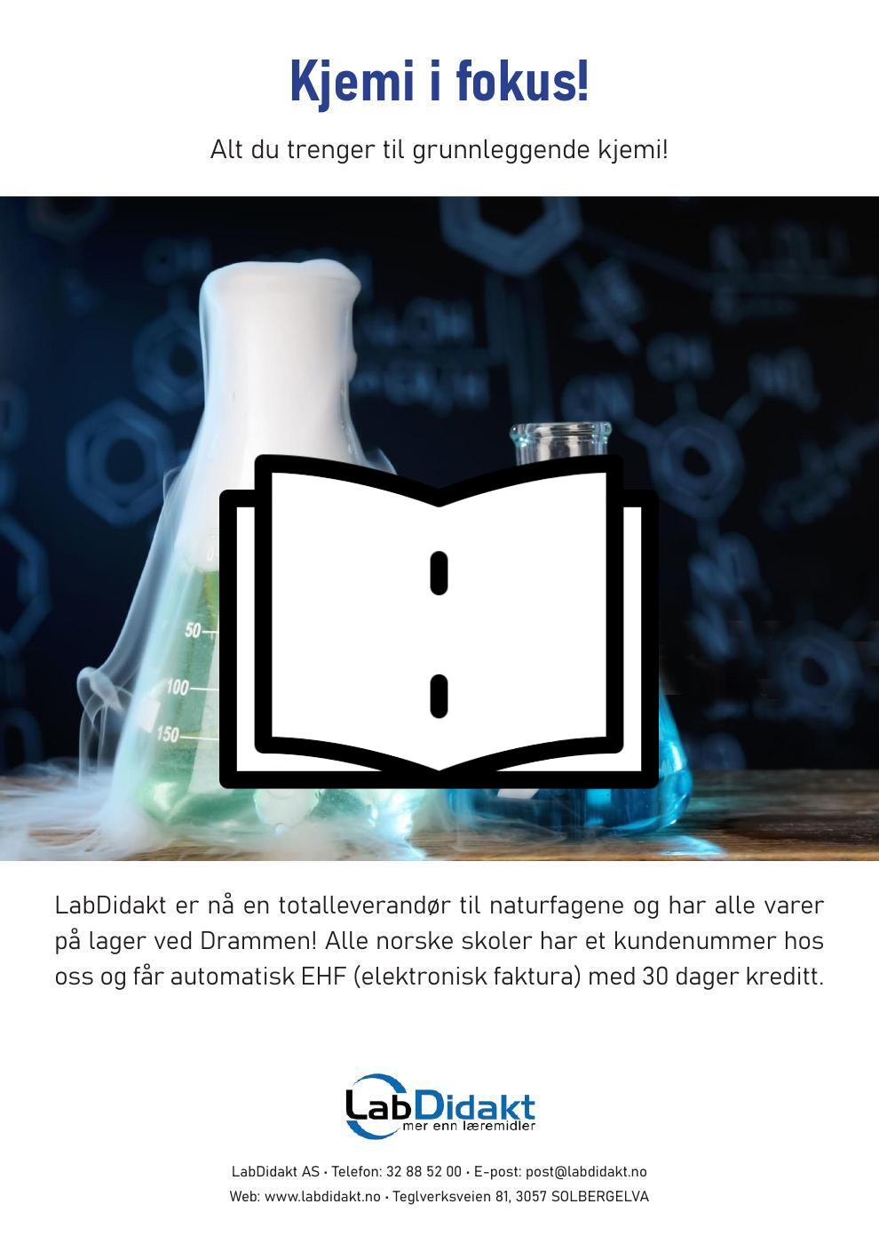 Kompakt 24 siders hefte som gir deg det du behøver for grunnleggende kjemiundervisning. Her finner blant annet kjemikalier, forbruksutstyr, vekter, molekylbyggesett, HMS og mye mer. Alt til skolvennlige priser og på lager!