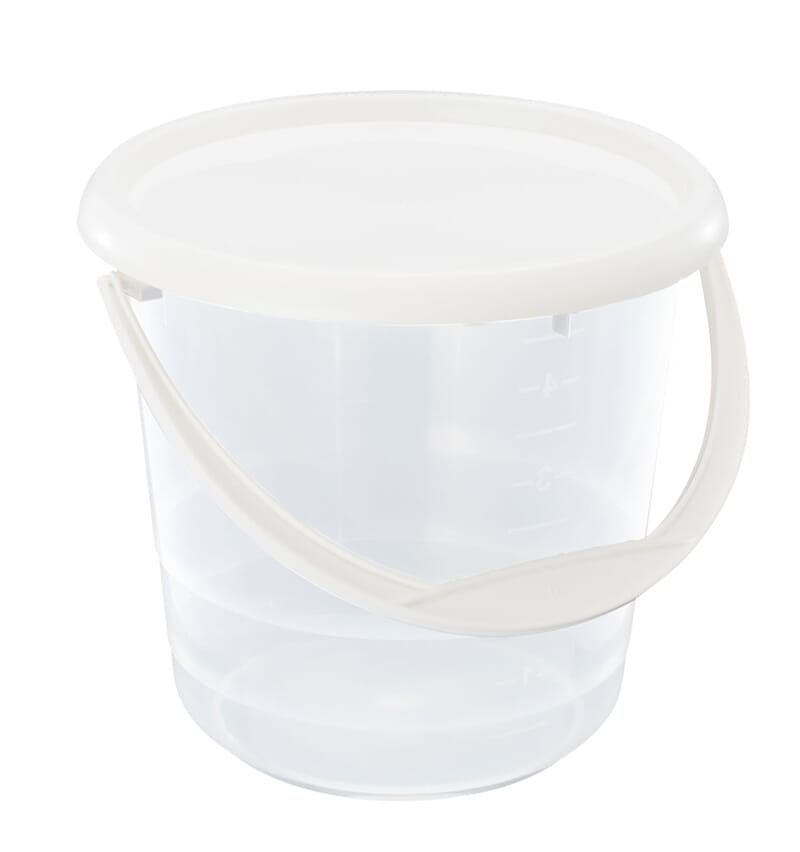 Praktisk og slitesterk bøtte til f.eks. utflukter. Bøtten er gjennomsiktig og halvlitersinndelt på innsiden. Hvitt, tettsittende lokk følger med.