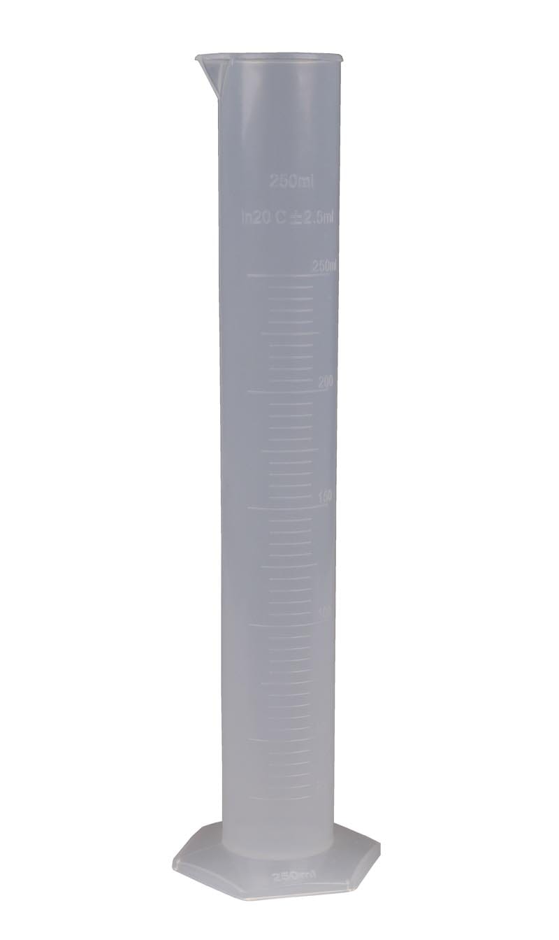 Utformet i gjennomsiktig hardplast med fremhevet skala og sekskantet fot. Sylinderen tåler inntil 120 °C. -
