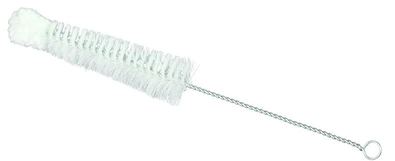 Reagensrørbørste i nylon. Passer for vask av reagensrør med 16 – 25 mm i diameter. Selve tuppen av børsten er av bomull som beskytter røret mot metallwiren.