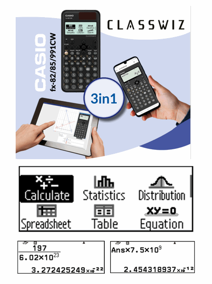 FX-991CW har, på lik linje med andre kalkulatorer i ClassWiz-serien, naturlig læreboksdisplay, rask prosessor og en klar og lettavlest skjerm. Den har både solcelle og batteridrift.