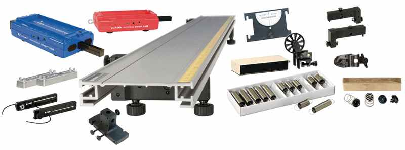 Et komplett dynamikksystem som inkluderer bane 1,2 m. i metall, to Smart Carts og standard tilbehør. Du kan med dette settet gjøre alle de klassiske øvelser i mekanikken som for eksempel Newtons tre lover, støtforsøk elastisk og uelastisk, impulsloven oscillerende bevegelse, forsøk med friksjon, klassiske snordrag øvelser og mye mer! Dette er den mest populære pakken, men vi kan tilby flere, både med mindre uttsyr og eventuelt lengre bane (2.2 m.) Se vår nettside eller ta kontakt med oss for råd.