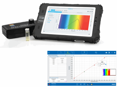 Programvare: All styring skjer via gratis PASCO Spectrometry-programvare, som tilbyr topunkt-kalibrering med lys/mørke og enkel justering av måleinnstillinger.
