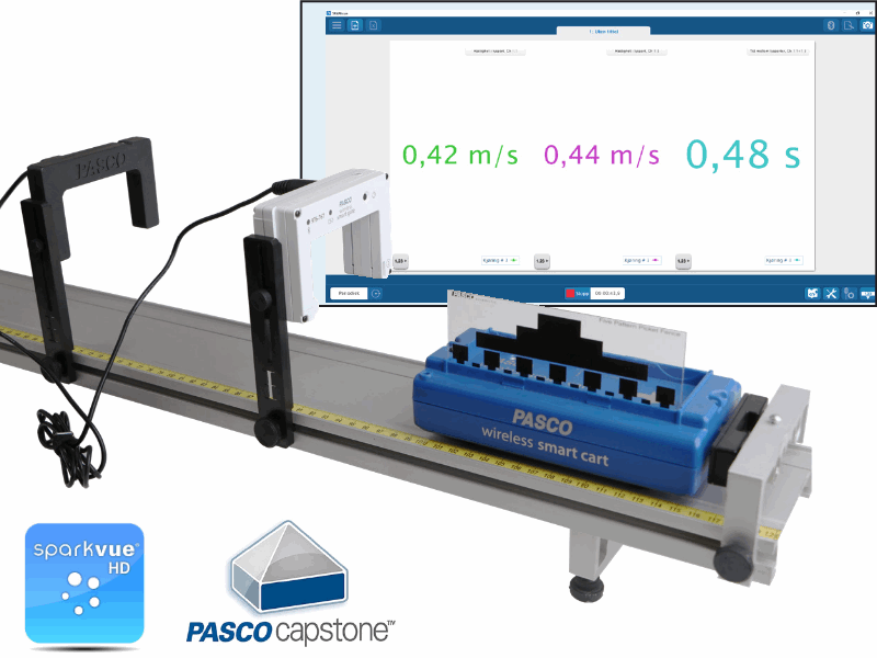 PASCO PS-3703 er et trådløst Smart Gate dynamikksystem utviklet for presis måling av tid og hastighet ved bruk sammen med dynamikkvogner og baner. Her får du alle målinger du tidligere gjorde med «telleren og fotoceller», digitalt og direkte til din PC-skjerm.