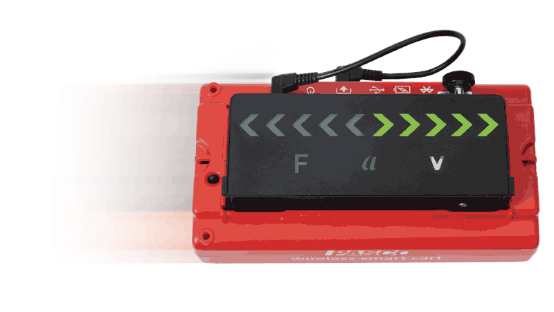 Med Smart Cart vektordisplay synliggjør du kraft, akselerasjon eller hastighet til din Smart Cart. Displayet skrus med en fingerskrue fast til vogna og kobles til Smart Cartens inngang. Smart Cart vil gi strøm til displayet og i SPARKvue eller Capstone velger du om det er kraft, akselerasjon eller hastighet som skal vises og justerer eventuelt skalaen slik at det passer til ditt forsøk. Displayet angir med rød eller grønn pil retningen på størrelsen som vises og antallet piler gir et mål på verdien.